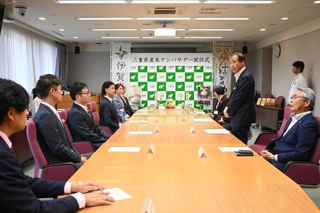 同会議の北原祐哉会長(全農みえ県本部長)は「アンバサダーとして県産米のPRに力添えいただけることは非常に心強い。この取り組みが県産米の消費拡大と皆様の事業の発展につながることを期待している」と挨拶しました。